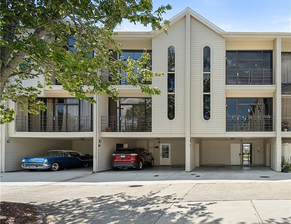 Life on the river! Gorgeous sunsets, private boat slip and out on the river in minutes from this townhome in Tchefuncte Harbour. This beautiful townhome is on 3 levels. Ground level is 2 covered parking spaces, laundry room and 1/2 bath. Main living area has 1/2 bath for your guests and a cozy fireplace that joins the living room to the upgraded kitchen with custom cabinets, crown molding, wine cooler, glass front Jenn Air refrigerator & Jenn Air dishwasher. Top level has 2 bedrooms both with ensuite bathrooms and balconies. New roof was installed early 2025. Located in a gated community with pool, clubhouse and tennis courts and walking distance to Historic Madisonville.