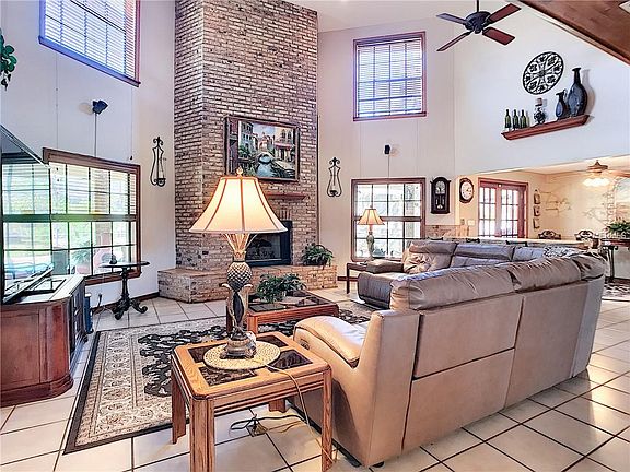 This beautiful Custom Home has so much to offer. The entire upstairs houses the Master Suite, but this area would also be great as a Game Room or Man Cave. The spacious living Room has a gas fireplace. The kitchen offers a breakfast nook and breakfast bar. There is a wet bar and wine cooler built in under the stairs. The home has a speaker system throughout and a central vacuum system. The hall bath has a beautiful walk in tiled shower. The exterior offers a shed with electricity that is currently being used as a workshop. The screened pool area is perfect for entertaining with lots of seating. The hot tub is heated with propane gas and there is a gas grill. The umbrella over the hot tub has solar lighting. There are 2 septic systems on the property as well as 2 ac units.
