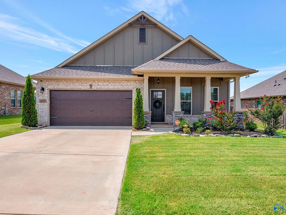 Like new home built 3 years ago - 127 Innocent Trail is a 4 bedroom, 2 bath full brick home located in Madison City School district. This house is great for entertaining with the open floor plan and covered back porch. Hardwoods and crown molding throughout the living room, dining room, and kitchen. Gas fire place in the living room is great in the colder months. Enjoy cooking in the beautiful kitchen that features white cabinets, gas range, granite countertops and large kitchen island. Large master bedroom and bathroom with full tile shower with bench and frameless door. Privacy fence in the backyard. Easy access to Redstone Arsenal, Research Park, Town Madison, and Clift Farms.