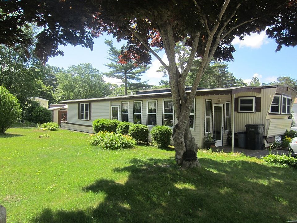 Welcome To Garden Homes Estates North! This one owner home features 2 bedrooms, 1 bath, living room with ceiling fan, electric fireplace. large eat in kitchen, 2 built in corner hutch cabinets, all appliances included. Home has large windows for lots of natural light. 2 Large enclosed porches with sliding glass door to the back yard where you will find two 8X8 sheds for all your storage needs, located on a nice corner lot with mature trees, plants, split rail fence. Garden Homes Estates is a nonage restricted community. $490 monthly Lot fee includes, taxes, septic, water, snow removal park roads, trash. Park Approval is required. Close to shopping, beach, golf, medical center, great highway access.