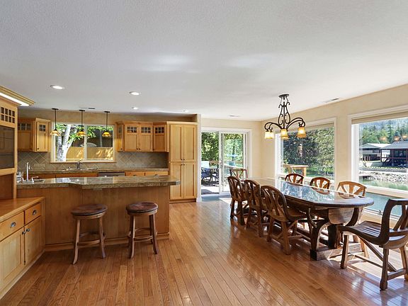 Enjoy the Pend Oreille lifestyle year-round in this gorgeous waterfront home, guest home and boat house just 3 miles to Sandpoint by land or water. The two-bedroom main home wraps you in quality and comfort with wood floors, spacious rooms and loads of windows to allow ample light and fantastic views. The kitchen’s custom cabinets and counter space allow you to serve a crowd in style, with adjacent inside and outside dining and gathering areas. Your main suite boasts a spa-like bath, reading nook and French doors to a private deck. Watch the eagles soar from your corner perch in the living room, near the cozy rock fireplace. Over the boat house, the fully contained ADU was remodeled with designer kitchen, private bedroom and large bath with laundry. There’s room for toys and vehicles, including a separate shop space for the artist or tinkerer. Grounds include a greenhouse, sprinklers, raised bed gardens, perennial plantings, swimming area and a dock. Boat, paddle, and swim from your front yard - Fry Creek is known for its safe harbor and gentle frontage leading to the Big Lake. Offered fully furnished for a turn-key experience.