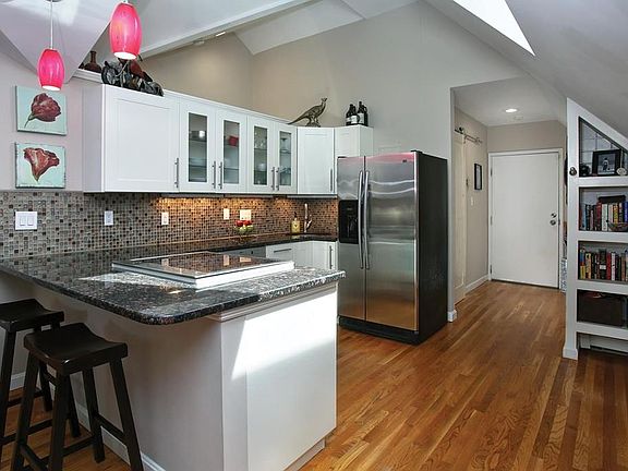 Privately situated close to the Brookline Border of Brighton, this fabulous two-bedroom condominium is stylish and carefully renovated. It features the desirable open concept floor plan with lofted and beamed ceilings, hardwood floors and skylights for wonderful natural light. This property is part of a 7-unit association that is privately managed with high owner occupancy and is pet friendly.The unit begins with a wonderfully renovated kitchen with stainless steel appliances, granite counter tops and excellent cabinet space. The living area has a flexible floorplan with access to the private wood deck. The bedrooms are both generous in size with excellent closet space. The bathroom is very recently and tastefully renovated with tile flooring and all updated cabinetry, lighting and shower/tub. There is much additional closet space as well as laundry in the unit. There is additional private storage as well as 1 parking space visible from the unit.