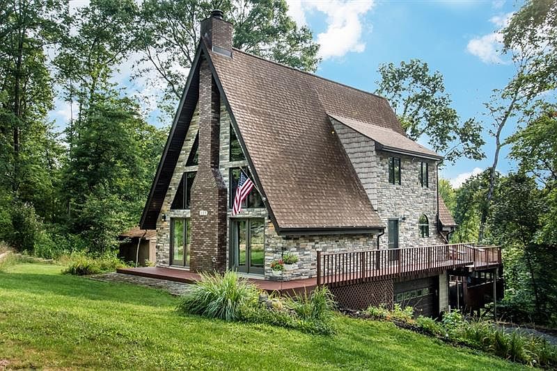 Completely Custom! Charming & Transformed! Fresh Paint, Polished Floors, Newly Stained Deck & much more! Stone A-Frame nestled in a wooded setting invites you to enjoy nature. Flower & Vegetable Gardens, Screened Gazebo & Pond come alive in the spring. Gather around the Wood Burning Fireplace in the Sprawling Family Room that spills into a Spacious Kitchen has hands-free faucet & so many windows you'll think you're outside! Main Level Master Bedroom. Full Bath boasts Ceramic Tile Flooring, Whirlpool Jet Tub & Pleasant Natural Daylight. Great usable basement space with high ceiling is completely dry for storage of finishing. 3 Phase Electric in place can run equipment, compressors, welding machine etc. Basement has rough ins. Heated Garage. Public water available.