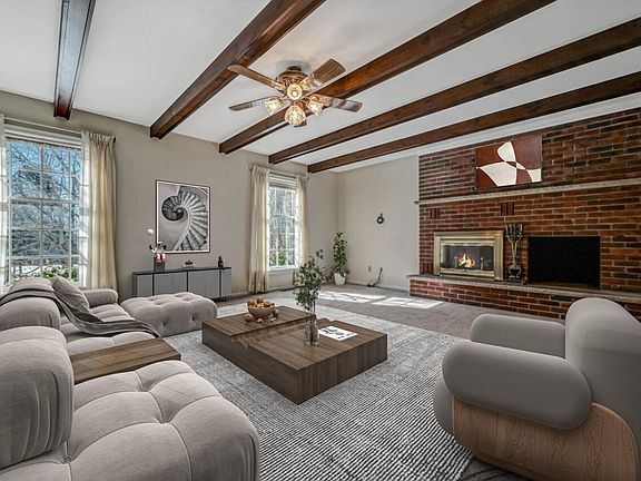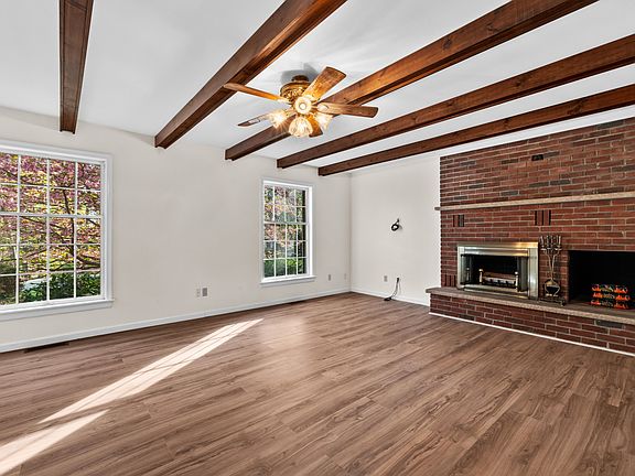 - Description: New Luxury Vinyl Floors, Ceiling Beams, Brick Wood Fireplace,