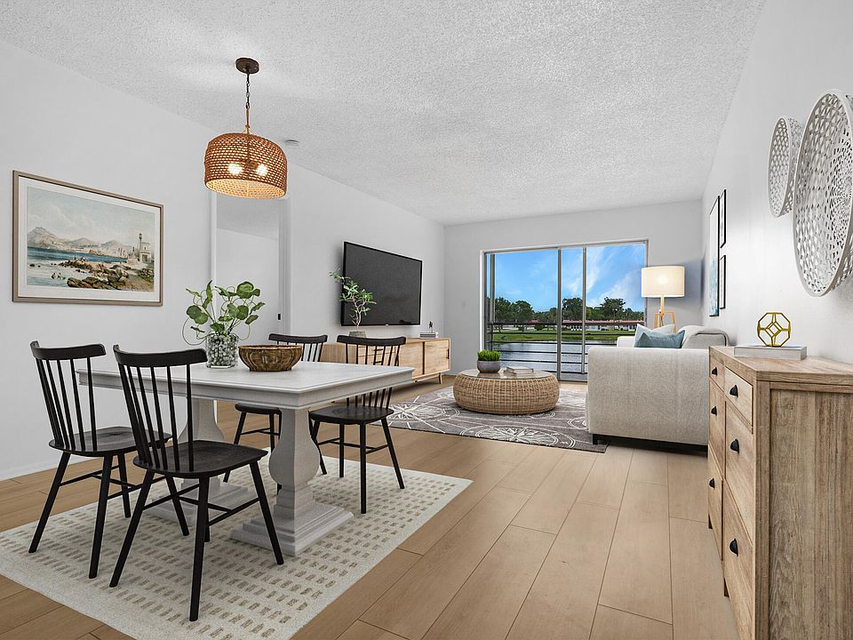 Beautifully updated 1 bdrm, 1.5 baths with serene water views in 24 hour manned gated Golden Lakes Community. New paint, new kitchen, new floors, new master bathroom, and new AC... no need to do a thing but move in! 2nd floor, corner unit located in one of the best buildings in the neighborhood! Large master suite with walk-in closet & stylish new bathroom. Community has social director, tons of activities, cafe, transportation, and close proximity to turnpike, PBI, restaurants, and Mall at Wellington Green. Low HOA $404 includes cable, water, building insurance, and all amenities.