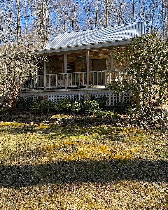 Located in a gated community on Lake Nantahala this 2BR 1BA stone house was part of an original Civilian Conservation Corp Camp & borders USFS! The house & a 600 sq ft stone building/garage sit on a serene .33-acre w/nice noisy creek along one property line. The primary BR & BA are on main level w/loft as a second sleeping space that overlooks the living area w/wood stove. Lovingly renovated with new metal roof, insulated T&G ceilings, exposed beams, plumbing, HVAC, insulated walls, kitchen cabinets, counters & appliances & flooring. Plus, fresh paint & major electrical upgrades. A 5-minute walk on well gravel subdivision roads leads you to the marina, dock & common area offered there. Close proximity to Bartram Trail, Nantahala River and AT. Memorable times to be lived here!
