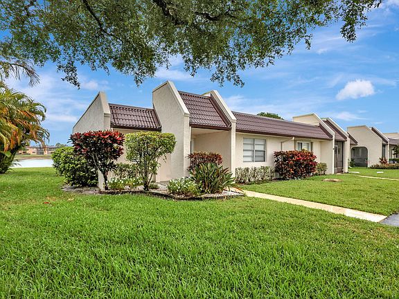 LOOK NO FURTHER, THIS UNIT HAS IT ALL! This turnkey updated corner villa offers breathtaking direct lake views. Enjoy a cozy eat-in kitchen and a formal dining area, perfect for hosting family and friends. The unit features a newer AC unit and water heater, along with the convenience of an in-unit washer/dryer.Relax in the spacious enclosed glass porch and feel secure with hurricane impact doors and windows. Step outside your front door and take a dive into the pool just steps away from the unit. Nestled in the beautiful gated Active 55+ community of Golden Lakes Village, this villa is ideally located near the turnpike, shopping, and restaurants. Don't miss this incredible opportunity. Schedule your showing today and make this wonderful home yours!