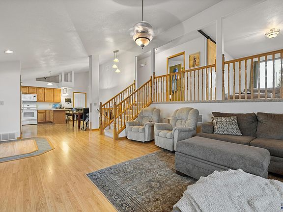This spacious and well-maintained 4-level home offers comfort, versatility, and a fantastic layout designed for modern living. With 3 bedrooms, 2 bathrooms, and an open floor plan featuring soaring vaulted ceilings, this home is perfect for those who value space and natural light. The main living area is bright and welcoming, flowing seamlessly into the kitchen and dining areas - ideal for everyday living or entertaining. An upper-level loft/den overlooks the living space below, providing a flexible area for a home office, reading nook, or family lounge. The primary suite is located on the upper level and features a walk-through closet with direct access to the bathroom, which includes a relaxing corner jetted tub/shower combo. Downstairs, you'll find two generously sized bedrooms, both with large windows and elegant tray ceilings, along with a full bathroom. The partially finished basement offers the opportunity to add a 4th bedroom or customize to suit your needs - home gym, playroom, media space, and more! Step outside to enjoy the large concrete patio, perfect for outdoor dining and entertaining. Don't miss your chance to own this beautifully designed home with the flexibility to make it your own. Schedule your showing today!