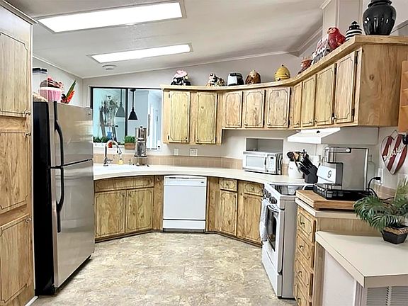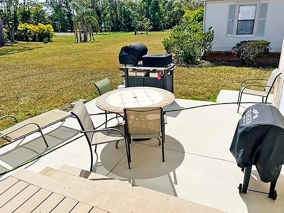 Beautifully renovated 2 bed/ 2 bath home plus Florida Room located on a low fee interior site. Exterior of the home has newer vinyl siding & so many interior updates which include; all new windows, extended driveway, updated walls, ceilings, newer flooring, newer carpet in the bedrooms, light fixtures, screened garage for nice air flow and large back patio overlooking expansive back yard. You enter into the bright & spacious Florida room & then step into the living and roomy dining room. Bathrooms have new vanities and toilets. 2023 roof replaced & golf cart included!