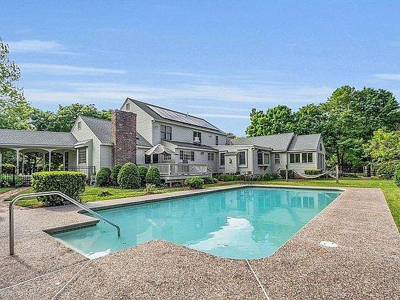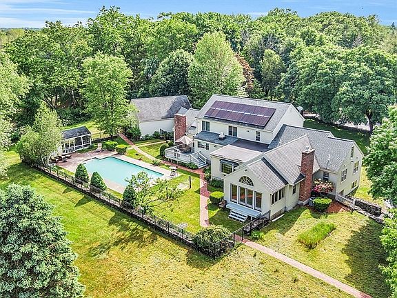 Located on a picturesque 1.95 acre lot anchoring a cul-de-sac, this stunning colonial boasts over 4200sf of beautiful living spaces main level includes master suite with 21ft closet, his & her bathrooms & a beautiful sunroom. A chef's kitchen with 60" Wolf range opens to a large family room w/fireplace & walk out to a deck overlooking a pool & gardens. Living room opens to amazing mahogany office through french doors. Upstairs features 4 bedrooms 2 full baths including a second master suite. Basement w/ workshop, game room & walk out door, 1st floor laundry, 11kw solar panel system (owned by Seller). Exterior features include stonewalls, lush lawn and gardens 3 car attached garage connect to open breezeway. A second driveway leads to a separate 4 car garage. House sits dry above the banks of the Assabet River with access for kayaking. All in convenient Concord location, 1 mile to Rt 2, less than 20 miles to Boston