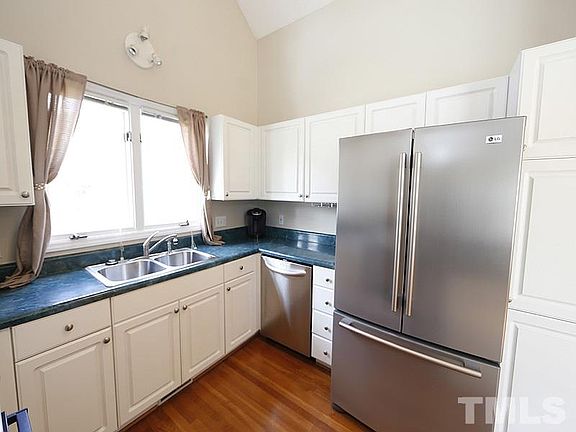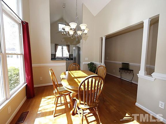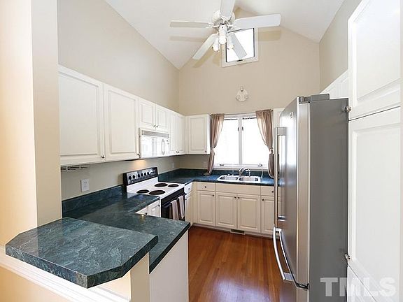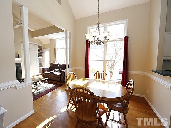Transitional Woodcroft Home w/first floor master suite! Cathedral ceilings in most rooms! Living room w/fireplace/gas logs/built-ins, open dining room, kitchen w/newer stainless frig/dishwasher, master bedroom w/sitting area, master bath w/garden tub/sep tile shower/dual sinks, 2nd first floor bedroom/bath, loft & 3rd bedroom/bath. Exterior rear deck/covered front porch, and fenced back yard. One car garage. New architectural shingles! Conv to Duke/UNC/RTP/I-40/Southpoint/walking trails! Must See!