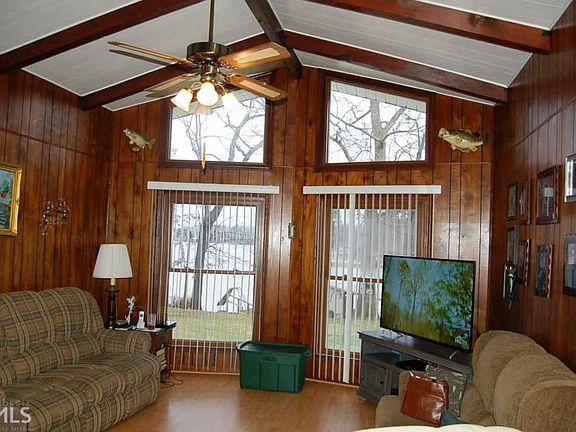 Well built lakefront cottage on Lake Sinclair with 1,431 sq.ft. home with 2BR 2BA, Great Room with masonry fireplace, laminated wood floors, kitchen, dining room, sunroom/office. 5 Outbuildings. Big lake view with Double Stall Boathouse with 1 lift,2 decks - needs some boards replaced, concrete seawall, deep water - 6 feet. Chain link fenced yard. Concrete driveway with 23'x13' RV Carport. Less than .5 mile to Twin Bridges Marina with boat ramp/storage/gas/food. Lot is .23 Acre + GA Power Lease Strip and faces East. Windstream Wifi & Cable Available.Estate Sale being sold "AS IS"