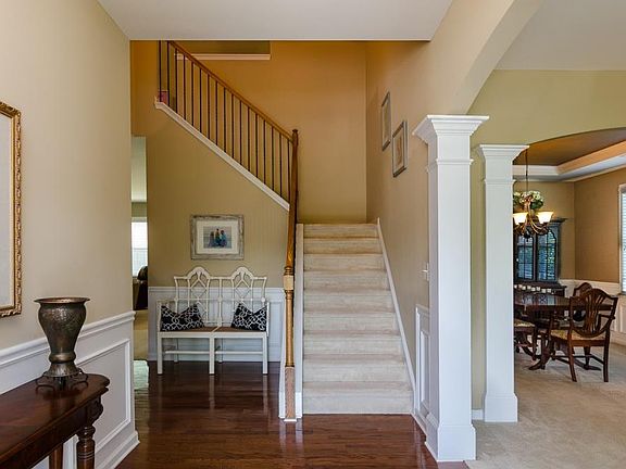 - Interior: 2-Story Foyer, Entrance Foyer, Trey Ceilings, Wall/Wall Carpet, 9 ft + Ceil Main, Disp Attic Stairs
