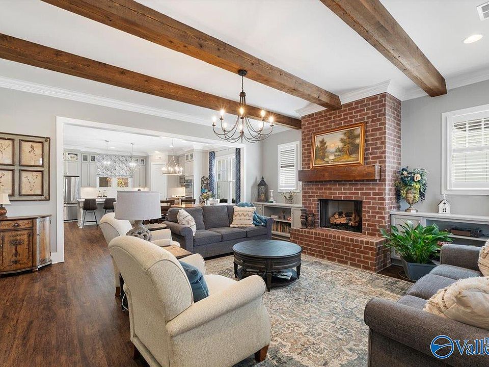 Stunning 4 BED, 3.5 bath home with/ OFFICE & BONUS room! Located in a master planned community in Madison City School District with lots of Community events. Home features an open-concept plan w/designer touches; wood beams, built-in cabinets, plantation shutters, extended cabinetry, crown molding, & fireplaces inside & out. Living room flows seamlessly into dining & chef’s kitchen, w/ quartz countertops & oversized island. Gorgeous primary suite on main level w/ walk-in closet and 10' ceilings. Bonus room and plenty of bedrooms upstairs. Covered back patio complete w/ outdoor fireplace. Short walk to POOL, LAKE, FITNESS CENTER, WALKING TRAILS, & PARK. Buyer credit w/preferred lender.