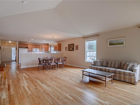 HIGHEST AND BEST BY 5PM MONDAY, 8/16 - End unit in the sought-after Walnut Tree Village 55+ community. The great room with a vaulted ceiling and gas log fireplace is the center of this light-filled open concept floor plan with newly refinished hardwood floors throughout the living space and kitchen. A well-equipped kitchen with breakfast bar and adjacent dining area offers space for everyday dining as well as for entertaining. The spacious great room leads to the deck with lots of room for outdoor living or dining in the warmer months. The master bedroom with new carpet has a vaulted ceiling, large walk-in closet and en-suite bath. A second bedroom, also with new carpet, could alternatively be used as a den or an office and has access to the full hall bath. The lower level offers finished space with baseboard heating as well as a large storage area, utility sink, and a cedar closet. Water heater replaced in 2020. This move-in ready unit is conveniently located close to town and to Exit 10 of I84.