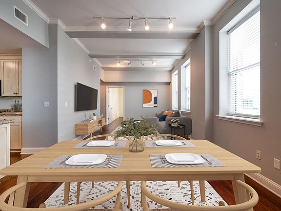 This stunning 2 bedroom 2 bathroom condo is located in The Goodwyn, a historic and elegant high-rise in the heart of the downtown. This home features hardwood floors throughout, 10-foot ceilings, and an open-concept living, dining, and kitchen area, perfect for entertaining. The kitchen boasts stainless steel appliances, granite countertops, and a large breakfast bar. The primary bedroom offers an en suite bathroom, featuring a large shower/tub combo, double-sink vanity, and a dressing closet with a built-in wall safe. The second full bathroom includes another shower/tub combo. Washer/dryer included. Pet friendly (cats and small dogs only). Parking is not included, but a parking garage is conveniently located directly adjacent to the building. Residents of The Goodwyn enjoy access to multiple amenities, including a rooftop deck with a plunge pool, outdoor kitchen, and city and river overlooks. The building also features a catering kitchen, a beautifully landscaped courtyard, and an inviting lobby with a gas fireplace, perfect for entertaining guests. The Goodwyn is centrally located downtown and just blocks from dining, parks, AutoZone Park, and more! Credit score minimum of 625. No short term leases. No smoking in property. Typical fees for approved applicants, not including security deposit: one-time admin fee of $250; any move-in fees associated with condominium's HOA; one-time pet fee & monthly pet rent, determined by PetScreening per pet - please ask the Property Manager for more information.