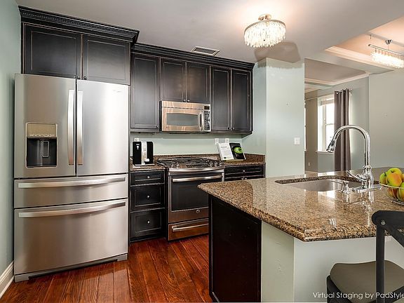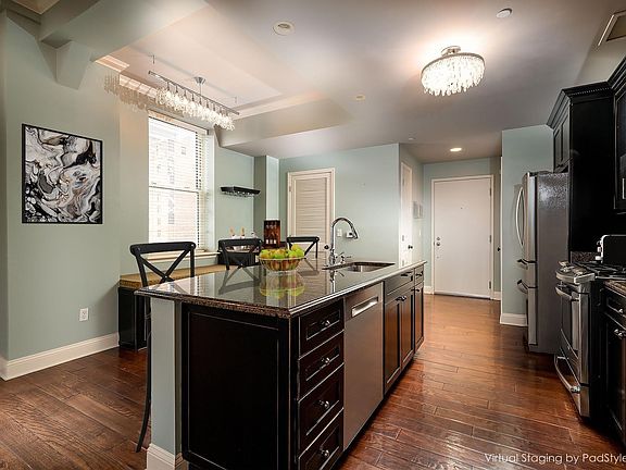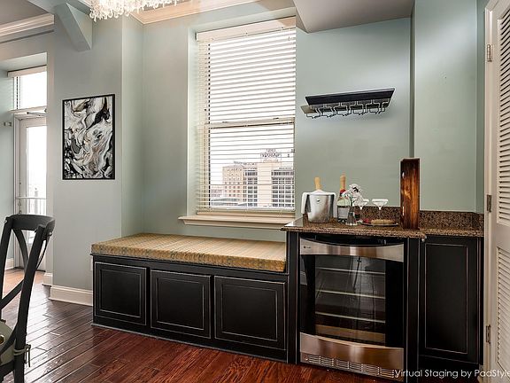 Fantastic condo in The Goodwyn! Built-in bookcases in LR, balcony, wine fridge, bench seat, 10 foot ceilings & a balcony with city views. Refrigerator, washer, dryer & large flat-screen TV remain. Turf pet area courtyard, entertaining lobby with wet bar, catering kitchen & loft library. Massive rooftop deck with 360 degree views of the river & the city. Splash pool doubles as a hot tub, two gas grills & outdoor kitchen, prep space & bathroom in the indoor rooftop area. No rentals allowed.
