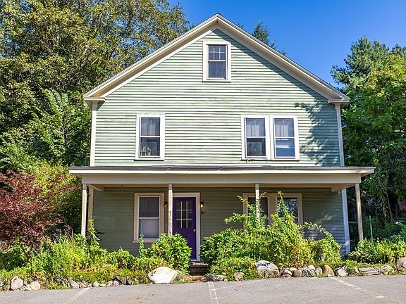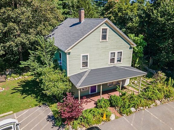 ATTN Investors/Homebuyers: two-bedroom converted cider mill boasts an open floor plan, exposed wood beams + tin ceilings. Private yard. Unique setting behind historic Exchange Hall. Perfect commuter location. The MBTA is located across Street. A long-covered porch welcomes you to the front door. The entry is at ground level with two bonus rooms and laundry. Upstairs, most rooms have pine floors. The kitchen connects to the dining area & to the living room. The bedrooms are nicely sized. One full bath. The rear door goes out to backyard. Opportunity to expand in the semi-finished walk-up attic. Basement has a cement floor & heated workshop. Systems are updated; the boiler, tankless on demand water heater & 100-amp service panel. Roof is 6 yrs old. Private Septic. Hook-up pipe for town sewer is at front left of house if ever needed. Currently Rented. 2 Parking spaces in front of home. Highly Rated Schools. See MLS for 129/131 Main & 2 School St's for Entire sales package.