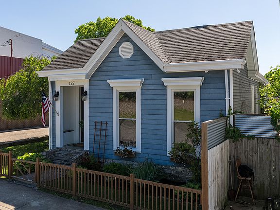 Pretty Blue is the color of your new home, surrounded by a natural wooden picket fence. Stone pathway leading up to an 8.5 foot preserved wooden door. Inside find 2 oversized bedrooms, one being a primary with a beautiful stone accented tile shower, tile flooring. Second bathroom also with an updated tile shower and tile flooring. With the large family room, it's easy to cozy up with a wood burning fireplace and dining area with plenty of natural lighting. Follow the soaring wood flooring back to your charming kitchen with a farm sink and white subway tile. Outside a large fenced in yard leading to a workshop in the basement. Downtown living with quick easy access to I-75. Seller open to concessions based on the terms of the offer. Call for your private showing now!!