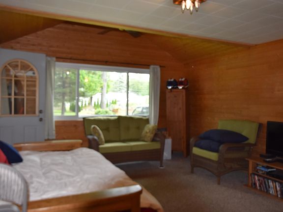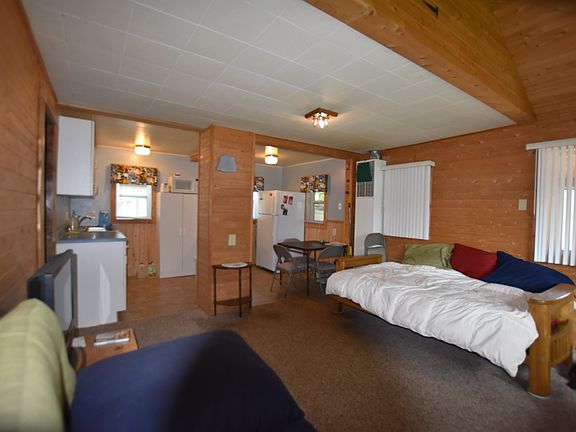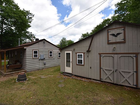 Cute one bed one bath cabin with large open living space, nice wooded cathedral ceiling, large bunkhouse for extra living with bunks and wall heater. Plus!! two story storage shed adds to the appeal! Newer appliances, replacement windows, newer roof and short distance to Houghton Lake access!