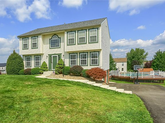 Spacious four bedroom accented with plenty of natural lighting, beautiful hardwood flooring in the entry and dining room! Kitchen features an abundance of oak cabinets, ceramic flooring and opens into the first-floor family room. Owners' suite features full bath and walk in closet. Generously sized additional bedrooms and full bath complete the upper floor. Newly finished 23X12 Lower-level game room is perfect for entertaining with easy walkout access to the brand-new patio & 21 ft heated pool. Storage galore with the 12X12 Shed with 2nd level. Other recent updates are driveway, paved sidewalk, Trex deck, garage doors & air conditioning! Convenient location to Interstate 376, Pittsburgh International airport, downtown Pittsburgh, and shopping.