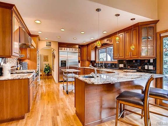 Exceptional Estates home on quiet street. Gorgeous hardwoods on entire main floor. Gourmet kitchen with cherry cabinets, Viking gas cook-top with pot filler, stainless appliances, prep sink, breakfast bar w/Murano glass lights. Vaulted family room w/skylights, bar area, built-in wine cooler. Views of Green Mountain from the Trex deck w/retractable awning. Entertain in style w/ the granite & brick outdoor kitchen with Lynx grill, side burner and refrigerator. Relax in the brand new hot tub on the private patio. Main floor study/5th bedroom with 3/4 bath adjacent. Master suite features a gas logs fireplace and deck with terrific downtown Denver views. The master bath is complete with radiant heat tile floor, heated towel bar & large steam shower with 2 shower heads. The second bedroom is vaulted with remodeled full bath. The full unfinished walk-out basement (9' ceiling) is waiting for your design. New carpet, new interior paint, new roof 2016, newer furnace, A/C, hot water heater.