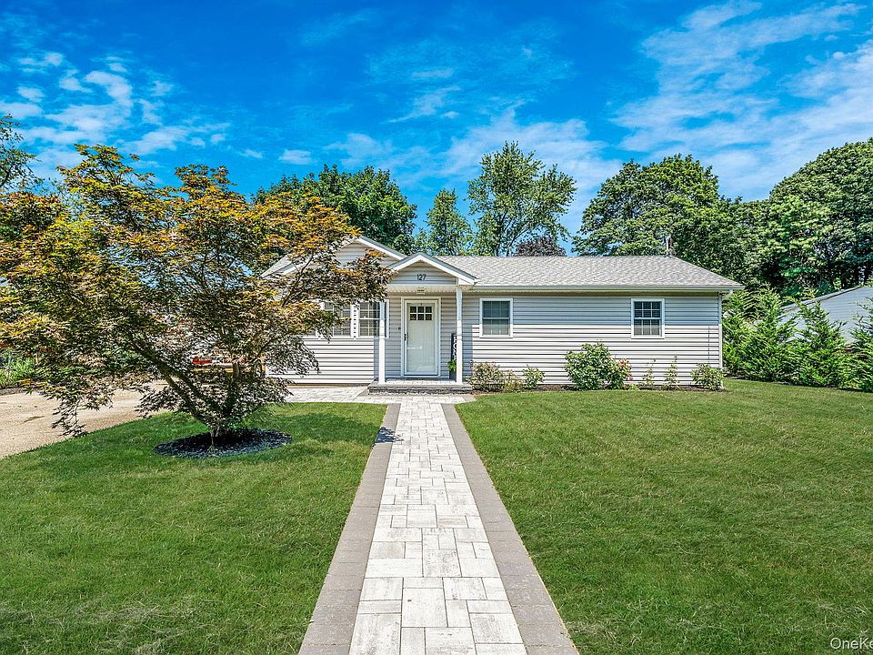Experience modern luxury in this stunning remodeled 3-bedroom, 1-bath ranch nestled on a beautifully manicured .25-acre lot in Brentwood. Fully renovated in 2022, this exquisite residence features all-new wood paneling throughout, a new roof, siding, windows, doors, and more. Inside, enjoy a master bedroom, high-end finishes, central air, natural gas heating, a custom in-ceiling speaker system in the bathroom, brand-new plumbing, and new 200AMP electrical service with each room on its own dedicated breaker. The open-concept layout blends elegance and comfort, with seamless flow from the sunlit living area to the stylish eat-in kitchen. Additional amenities include soffit lighting around the entire home, an in-ground sprinkler system in the front yard, a drip line irrigation system for the privacy hedge, a brand-new PVC fence enclosing the property, and a private patio perfect for entertaining. Appliances not included in the sale. Located on a quiet street in Brentwood, close to schools, parks, shopping, and transportation. A move-in ready gem with top-tier upgrades, just waiting for you to call it home!