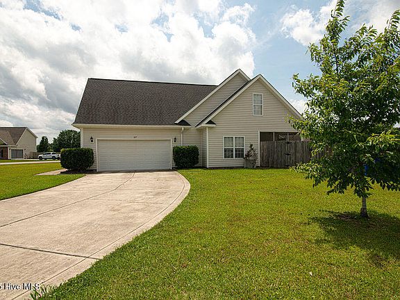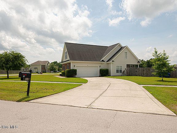 Welcome to 127 Moonstone Court, Jacksonville, NC! This spacious and beautifully maintained 4-bedroom, 3-full-bath home offers 2,380 heated square feet of comfortable living space in a desirable neighborhood with community pool and clubhouse access. Sitting on a corner lot of a cul-de-sac street, this property is perfect for families and entertainers alike. Step inside to find brand new carpeting throughout, a cozy fireplace in the living room, and a well-appointed formal dining area ideal for hosting guests. The bonus room upstairs provides a versatile space—perfect for a playroom, media room, or home office. The kitchen opens to the living space and features ample cabinetry, making meal prep a breeze. The 2-car garage includes built-in storage for your tools, gear, or seasonal items. Enjoy outdoor living with a screened-in porch, overlooking a privacy-fenced backyard—perfect for pets, kids, and weekend BBQs. Located near base access, shopping, and dining, this move-in ready home truly has it all. Schedule your showing today and make 127 Moonstone Court your new address!