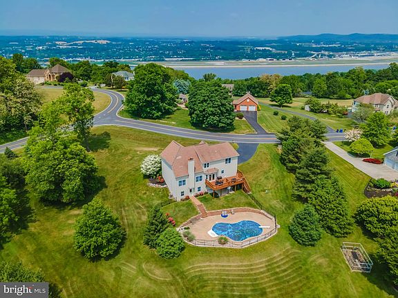 West Shore Living at its Best. 1.24 Acre private homesite, inground pool. Spectacular mountain and vista views. Over 3,700 SF of luxurious, quality constructed living space including an open finished walkout lower level. Stunning two story foyer, palladian window, grand staircase with oak treads, painted rises. Gorgeous hardwood floors running through the entire first floor with the exception of a beautiful and practical tile foyer. Formal living room or private office with French doors, crown molding and bay window. Elegant dining room with hutch enclave, shadow box molding and tray ceiling with double crown molding. Remodeled eat-in kitchen, white cabinets, white quartz countertops, 6' painted center island, stainless steel appliances, oversized stainless steel sink with gooseneck pullout faucet, five burner gas range, double door pantry and convenient built-in desk and charging station. Vaulted two story great room, floor to ceiling brick wood burning fireplace, slate hearth and an elegant mantel. Windows galore wrap the back of this comfortable home to capture the incredible, unobstructed views and allow streams of natural light to fill the home. Bay-shaped dining deck and tiered grilling deck that's 31x12 with stairs to rear yard, pool and patio. 36x22 crescent-shaped inground pool, diving board and depth up to 8'. Fox Pools installing brand new pool liner on May 30th. Generously-sized owner’s suite with sensational views, trey ceiling, large walk-in closet, five piece owner’s bath with double bowl vanity sink, walk-in shower and large soaking tub with views that will help you relax and rejuvenate. Three additional nicely-sized bedrooms, ample closet space and hall bathroom with an exceptionally wide vanity area and shower/tub combo. Almost 1,000 SF of finished living space in the walkout lower level, including a powder room. A gas stove for supplemental heat. Unfinished storage space with double door entry that's perfect for lawn and pool equipment. Energy efficient gas heat and hot water. Oversized two car garage provides more storage. Convenient location, easy access to I83 and turnpike, halfway between York and Harrisburg. Mountain View is a community of quality custom homes appropriately named for its spectacular views of the Susquehanna River, mountains and vistas. Bring your swimsuit and towel, that's all you'll need for this move-in ready, well-maintained, beautiful home.