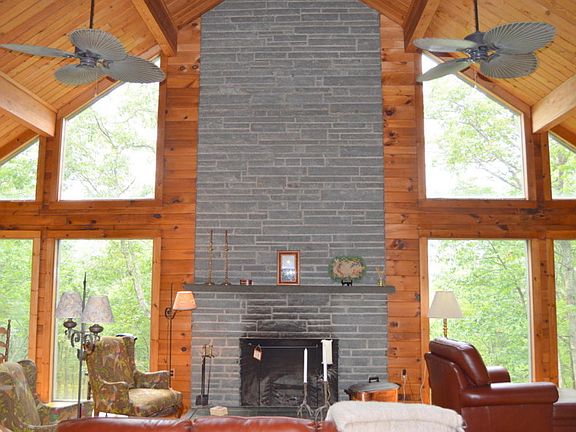 Step back in time to a peaceful and tranquil setting, a club for the family to relax and enjoy the outdoors. This completely renovated 4 bedroom, 4 1/2 bath charming mountain home within walking distance to the Club house and Wolfe Lake. Open floor plan with screened room, finished basement, master suite, large deck overlooking the gorgeous mountain views. Two fireplaces, Central A/C, generator, granite counters and SS appliances,hardwood floors and cathedral ceilings. The home has two boat houses, one on each lake. The club offers family dining, beaches, hunting, fishing, tennis and so much more.