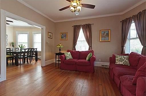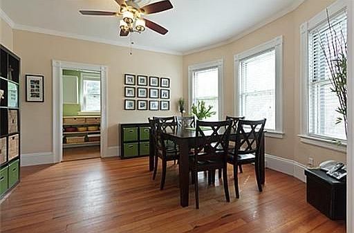 Big and beautiful house. Front of house on a main road, but rear backs onto cemetery and provides some peace and a lovely view. Artificial turf in back yard provides year round play area for children. 5 minute walk to Arlington Center; easy access to schools; close to play areas/sports fields.