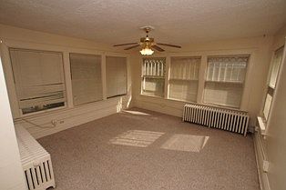 4 Plex - Spacious. 2nd floor 1 bedroom apartment. Fantastic sunroom/living room; plenty of light that comes windows on the east, west and south; large eat-in kitchen with wood floors has a gas range and large refrigerator and a large closet off to the side; the bedroom has a walk-in closet and the 3/4 bath has a fully tiled shower, nice linen closet. Designated garage parking in the back for one car may be available.