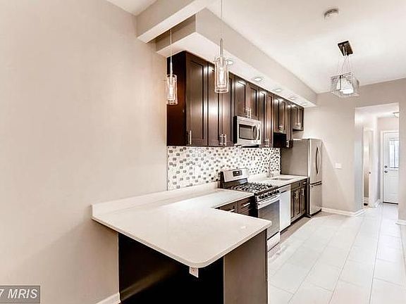 Home on the coveted N. Collington Ave. This house was renovated six years ago. Two bedrooms, each with its own full bath, and a den, on the second floor. A full beautiful kitchen with modern appliances on the first floor. New Washer and dryer in the basement. New HVAC. Close to Patterson Park and Hopkins. Applicants must have good credit and pass background checks. Tenant responsible for all utilities