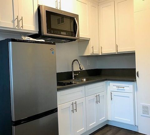 Your new home includes newer flooring, new two tone paint, newer light fixtures, newer window covering, entirely newer kitchen and bath cabinets with newer quartz counter top. Newer dual sink bath mount sinks and faucets! Lots of natural light enters the unit from the north side of the building. Microwave & refrigerator included. Pet friendly. Onsite shared laundry machines. Controlled access. Street parking available. Tenant pays for gas, electricity and trash.