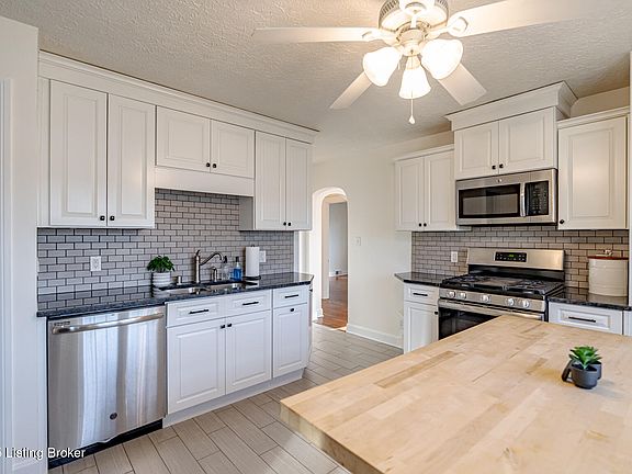 Beautiful & updated St. Matthews home w/ garage & large, fenced yard! This gorgeous home features a spacious great room, updated kitchen w/ granite, tile backsplash, movable butcher block island, & stainless steel appliances, 3 spacious bedrooms (primary has its own vanity w/ sink), arched doorways, updated bath w/ tile shower, hardwood flooring, professionally waterproofed basement, & more! The exterior boasts a nice, covered porch, breezeway to the garage, & patio! Don't miss!