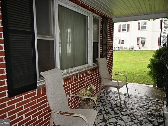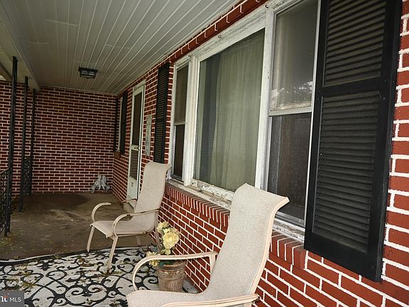 Delightful front porch. How do you spell opportunity? In town brick ranch home in need of painting, cleaning and some updating! Do the work yourselves and you will have a home to be proud of. Covered front porch and a covered patio in the rear of the home. Big living room, wood floors throughout the home. The kitchen offers gas cooking, ceiling fan fixture and double sink. Ceiling fan fixture in the dining area which has views of the quiet back yard. Three bedrooms and a bath that includes tiled walls and a tub shower. Walk up attic is perfect for storage. Full basement with stairs to backyard. What a pleasant yard. Big trees for shade, lots of stone driveway for parking. Such a find in middle of a small town!