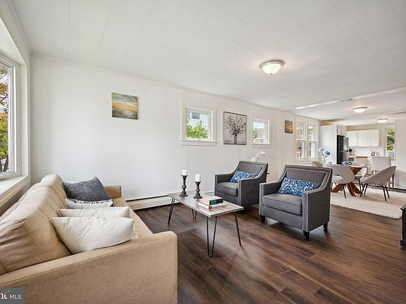Adorable Runnemede Manor Bungalow! Charming exterior with two bay windows, new light fixtures and brick landscaping accents. The front door also features a beveled glass insert with glass block trim on both sides bringing in lots of natural light. Wonderful open floor plan as you enter the living room with coat closet and vinyl plank wood look flooring that flows throughout the main floor. Spacious dining area with 2 double hung windows and a small pantry closet. Kitchen with white painted cabinetry (includes a large pantry cabinet with pull out drawers), butcher block counter tops, subway tile backsplash, corner sink with goose neck faucet, two large casement windows plus stainless gas range, microwave and dishwasher. The refrigerator remains. Primary bedroom with large double closet with built-in drawers plus a large bow window. The second bedroom has access to the huge walk-up attic for plenty of storage or the potential for future additional living space. Main hall bath with vintage accents has a pedestal sink and large linen closet. The jetted tub has never been used by the current owner and is conveyed as-is. Full basement with five sliding windows and french drain system with 2 sump pumps. A utility sink plus washer and dryer remain but in as-is condition. Brand new roof per seller, freshly painted interior, comfortable hot water baseboard heat, windows replaced approximately 2010 per information seen from previous owner. Driveway that easily fits two cars and spacious back yard with patio and oversized shed. convenient location close to shopping, schools, restaurants and major arteries. Easy to show!
