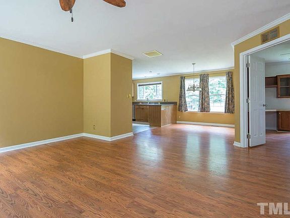 Beautiful Lake Royale home w/plenty of natural light; 1 block to lake! Great condition, sold as is. Kitchen boasts upgraded cabs &granite ctops, SS apps, hanging pan rack &breakfast area. Master suite has lg walk-in w/shelving, garden tub, granite ctops, updated bowl sinks &fixtures. Good sized secondary bedrooms. Jack&Jill w/large windows &glass shower; Guest suite w/private full bath &large walk-in closet. Private backyard w/lg deck &storage shed great for watchinig wildlife. AHS Warranty until 4/25/19