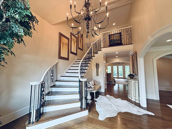 Amazing home nestled in the Lamarche neighborhood of Chenal. This custom-built home has been meticulously maintained and a delight for entertaining family and friends. From the elegant entry find the formal dining room with butler pantry, greatroom with wall of built-in and french doors to a tiled balcony overlooking lush green space. The chef's kitchen is well appointed with top-of-the-line appliances, breakfast bar, separate breakfast room that is open to large hearth room with wbfp. The updated primary suite is on the main level with double vanities, tub, shower & walk in closet as well as laundry room and half bath. Upstairs find 2 ensuite bedrooms with walk-in closets and walk-out storage. Downstairs, find an additional family room - gameroom with kitchen and dining area as well as bedroom and full bath. Enjoy peaceful entertaining on the covered back patio overlooking the lovely landscaped backyard and greenbelt.