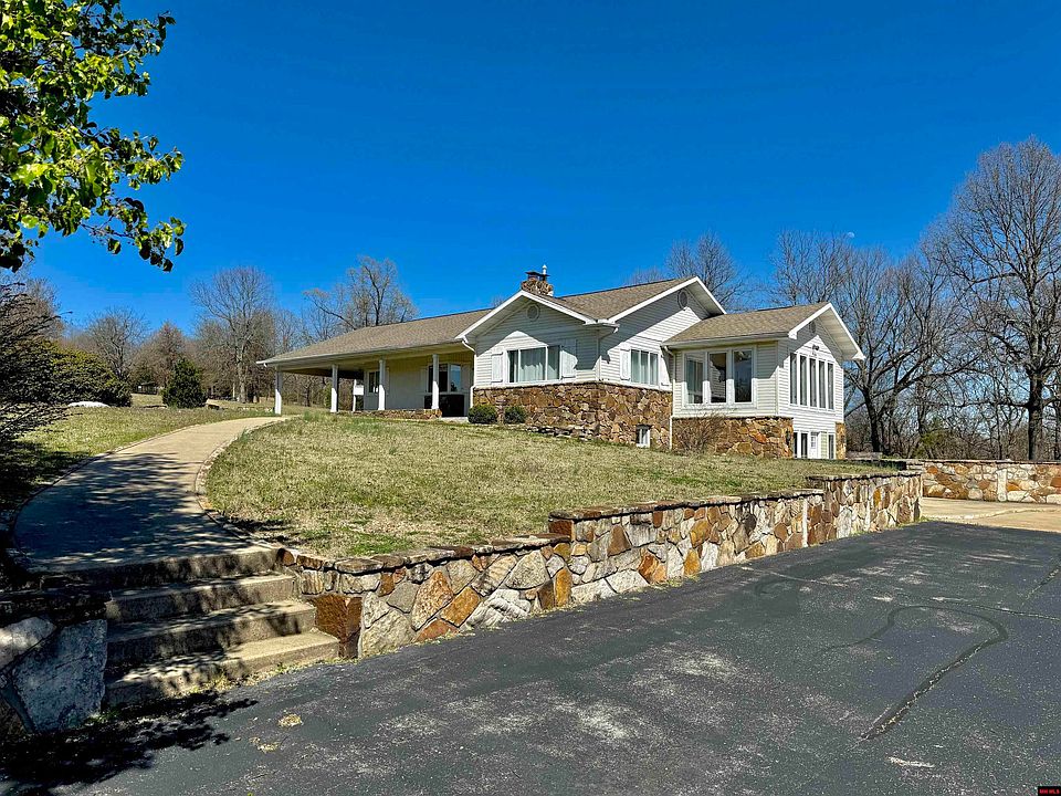 This stunning 4 bedroom, 3 bathroom sanctuary offers the perfect blend of comfort and luxury. Enjoy breathtaking distant views of the Ozark Mountains and sunsets on a daily! Discover a cozy gas log fireplace, creating the perfect ambiance. Spacious family room on lower level. There is a large study/sunroom adjacent to the primary bedroom for private sun filled moments. Country style kitchen boasts stainless steel appliances. Large garage with extra hobby rooms provides storage and workspace, paved driveway, and carport. Located minutes from town, Norfork Lake, and the White River.