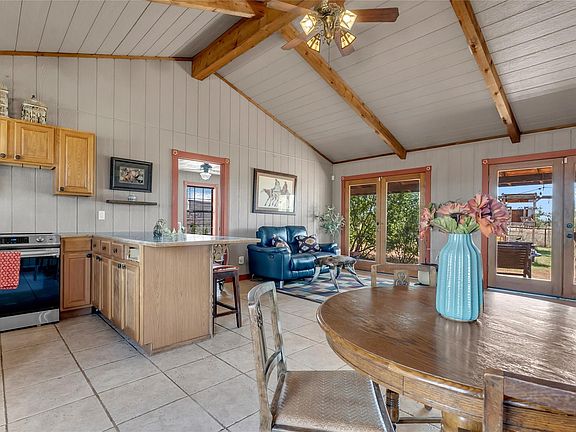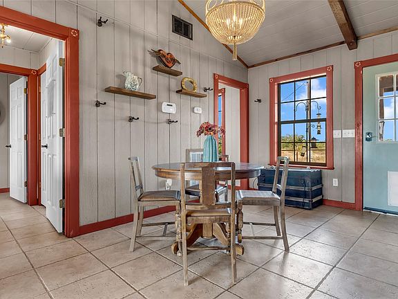 Set on over 10 scenic acres, this stylish white rock ranch home offers a perfect mix of rustic charm and modern ease. With an open layout, the 2-bedroom, 2-bath home features walk-in showers, durable tile flooring throughout, and a standing seam metal roof. A spacious covered back porch invites you to relax and take in the views, while the fenced backyard with a sprinkler-fed holding tank is ideal for pets, play, or gardening. Equestrian-ready, the property includes 4 horse stalls, a chicken coop, storage building, RV hookup, and full perimeter fencing for added privacy. A serene Hill Country retreat with thoughtful amenities for both living and leisure.