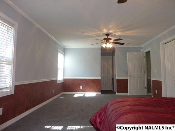 Spacious 5 bd 3 ba home on wooded lot--low traffic dead end street. Priceville school district. Home was completely updated 8 yrs ago. Low maintenance brick and vinyl siding. 2 bd and 2 ba on main floor. Large great room on main floor. Bonus room upstairs. Fully equipped kitchen with lots of counter space and island. Spacious baths with double vanities in master and upstairs baths. Upstairs bonus and front bedrooms have large dormer areas. Enclosed inoperable well. Detached garage has separate storage room and unfinished room above. RV hookup on north side of garage. Circle driveway. Extensive security/camera system. 1.5 miles from I-65 at Priceville exit. Move-in ready! 1-yr home warranty.