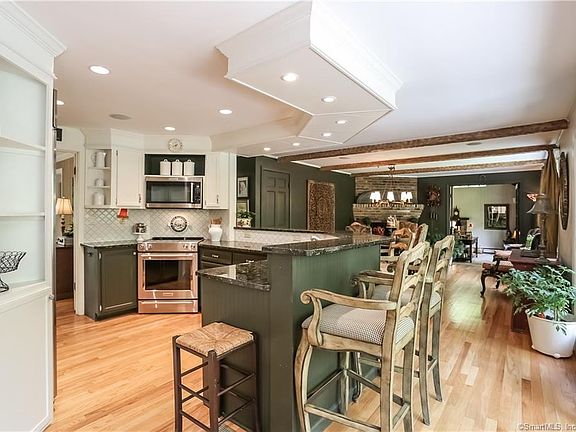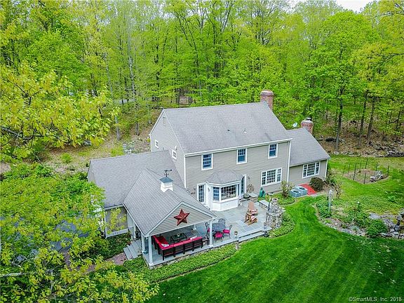 Colonial with 4-bedroom, 2 ½ bathroom. Floor plan provides a fabulous space and flow for both entertaining and everyday living. Kitchen is a chef's dream Filled with natural light and bay window with window seat and nearly endless storage. Top-of-the-line appliances and seating for 4 at the breakfast bar Separate coffee bar just adds to the warm of this kitchen space. Prepare meals in the kitchen while overlooking the impressive stone fireplace in the adjoining dining area. Living room with sweeping views of the grounds plus a humble, yet elegant, fireplace accentuates the room's already inviting atmosphere. Family room features built-in cabinetry, vaulted ceilings, new carpeting and fireplace. First floor also includes a powder room, integrated sound system, with speakers throughout the main floor and outdoor patio. On the second floor you'll be greeted with a stunning master suite which includes an oversized custom closet, remodeled bath with double vanities, heated floors and frameless shower. Three additional generously-sized, well-lit bedrooms offer new windows, ample closet space and hardwood floors. Large renovated kids bath and oversized second floor landing with laundry area complete the second floor. The lower level of the home provides ample room for a workout area, kids game room and ample storage areas The outdoor space is another truly distinctive feature of this home. Pavilion over patio area. Outdoors fireplace. 3+ private acres Numerous updates