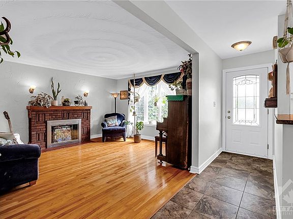 Cute as a button, this buttery-yellow bungalow with 4 spacious bedrooms is set on a landscaped corner lot in the heart of Perth. The welcoming front porch with the milk-chute still intact, opens into a spacious tiled foyer. The large eat-in kitchen is overflowing with cabinetry, including a built-in china cabinet. Stainless steel appliances include a gas range and new 3-tier dishwasher. The open LR boasts original hardwood floors, a decorative fireplace, & a beautiful bay window that fills the space with natural light. The bright lower level offers a massive family room with new berber carpet, built-in bookcase, stone fireplace, & a retro wet bar. Other features include a screened-in gazebo with an antique wood stove, & a single-car garage attached by a breezeway & mud room. Within walking distance to beautiful downtown heritage Perth where shopping, dining, recreation, Stewart Park & the Tay River await. Enjoy small-town charm with an easy commute to Carleton Place, Kanata, and Ottawa