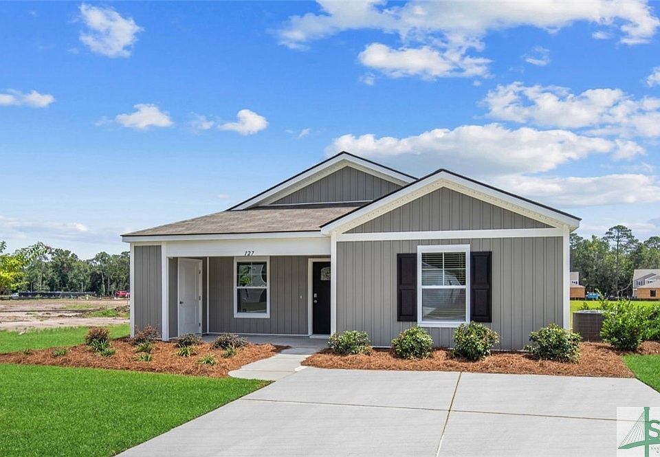 Move in Ready & No lot premium! Welcome to Longleaf Village conveniently located off Goshen Road in the highly sought-after Effingham County Award Winning School District. Charming 3 Bedroom Cottage offers one story living complete w/3 bedrooms & 2 full baths. Amazing view of the large oak tree & pond with a covered front porch to sit and relax & back patio offer outdoor living at its finest. Kitchen complete w/ GLEAMING quartz countertops, stainless-steel appliances & pantry is open to spacious living room. Primary bedroom includes LARGE walk-in closet, double vanity bath & walk in shower. Two privately located bedrooms are serviced by a full hall bath. Smart Home Technology & 2" Faux Wood Blinds Included! Pictures, photographs, colors, features & sizes are for illustration purposes only & will vary from the homes as built. Home is under construction. *Ask how to receive up to $8,500 towards closing cost & below market interest rate w/ use of preferred lender & attorney!***