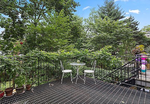 This grand scale, 2 large bedroom plus a baby's room or home room , 2.5 bathroom duplex is part of a rare, 22 ft wide brownstone.There is a two-story extension which adds to the size and scale of this grand home. (See layout for details). The over-sized rooms, including a 26 ft long living room and 22 ft wide kitchen / dining room are ideal for entertaining. The space has mahogany pocket doors, grand over-sized moldings, 13 ft restored original plaster ceilings, and restored white pine flooring throughout. The rear parlor with an original brass period chandelier has great light from it's three panel bay window, while the front parlor has dramatic, circa 1873 Italianate floor to ceiling windows. The kitchen features an Ann Sachs ceramic tile backslash / wall with a stainless steel shelf and under counter lighting. There's a white Corian countertop, and a high-end appliances including a Bertazzoni stove, a Bosch dishwasher and a 36" double door refrigerator. There is plenty of handmade oak kitchen cabinetry and a separate pantry room. The large master bedroom has it's own private bathroom with a double sink. All three baths feature custom glass and ceramic tiles. A large newly-built terrace has direct access from the rear parlor kitchen and dining room, making it ideal for summertime outdoor dining. The over-sized backyard is 1300 sq. ft, allowing for lots of privacy. Located steps to Prospect Park and the 2, 3, B & Q trains. A short walk to the Barclay/Atlantic Center.