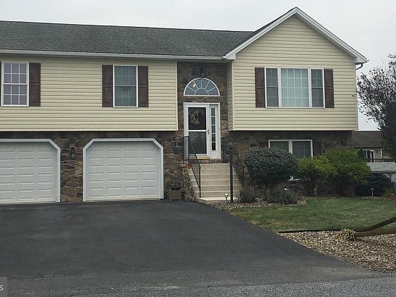 Beautiful 3 bedroom, 2.5 bath home in Fieldcrest Development. Upon entering, as you walk up a few steps, you find a contemporary kitchen with Pergo wood flooring, stainless steel appliances and recently installed granite countertops and back splashes. Off the dining and living room areas is a good size deck, partially covered with the furniture included. Also upstairs on main level you'll find two upgraded full bathrooms, including the primary bedroom with walk-in closet and water resistant flooring in the bathroom. Downstairs there is a large family room with Pergo wood flooring, a fireplace, laundry area and a large patio off the family room. There is a two car attached garage, new heat pump, large shed outside for additional storage and beautiful landscaping around the entire property. Don't miss seeing this home!