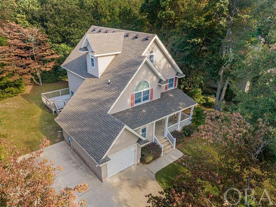 This Roanoke Island home has been very well cared for and offers 4 bedrooms, 2.5 baths, attached garage, lots of privacy and the added bonus of a community pool. Owners have made many recent improvements and updates including: new roof, HVAC, high efficiency water heater, professionally finished hardwood floors, interior paint and flooring (see detailed list in associated documents). The first level features a large kitchen with breakfast nook, generous dining room, cozy family room, separate laundry room, half bath and large sun deck overlooking private backyard with mature landscaping. On the second level there is a large primary bedroom (17' x 13') with ensuite bath featuring dual vanities, garden tub, enclosed shower and walk-in closet. There are 2 additional bedrooms and a full bath also on this level. The third level features a huge bonus/flex room that can be utilized as a 4th bedroom, guest/in-law suite, home office, craft room, theatre room or family recreation room. This neighborhood is the ideal year round setting; large private homesites, community pool to keep you cool in the summer and quick access to the municipal walking/biking trails that make getting to downtown Manteo a breeze. Come take a look at this charming home today!