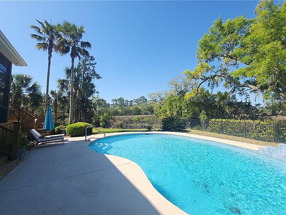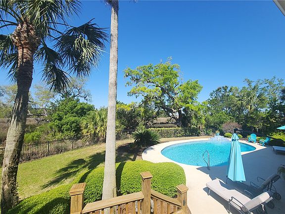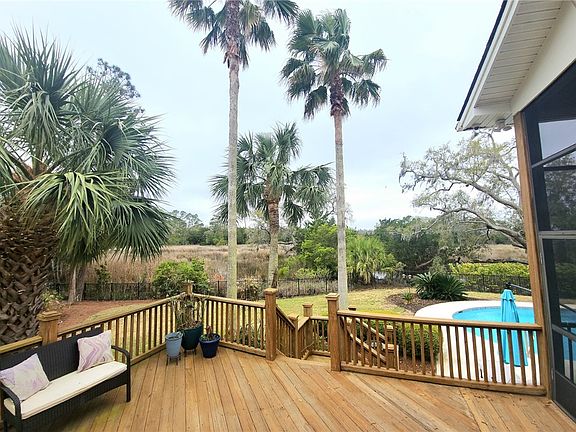 recent survey under supplements. Pool, marsh, awesome views, + open deck & screened porch providing additional living space. Our Island has public & private Golf Courses (one w/in the neighborhood-King & Prince), private airport (SSI McKinnon) + daily Atlanta trips via mainland (Brunswick/BQK) airport, lovely pet friendly beaches (seasonal pet access) and tranquil oak trees draped in moss. Most major components in home less than 3 years old (roof, 1 new AC unit, oven, staining & screening of deck, sunshade, pool pump & lights, ceiling fans & light fixtures, and more!). House is in gated community. Large double garage w/access under home for additional storage. Yard to left of house large enough for swing set to enjoy afternoon views.