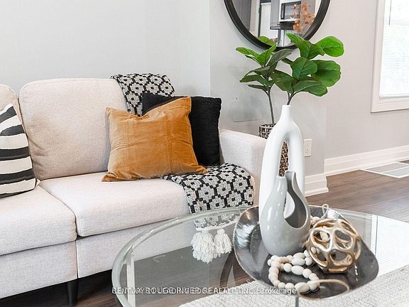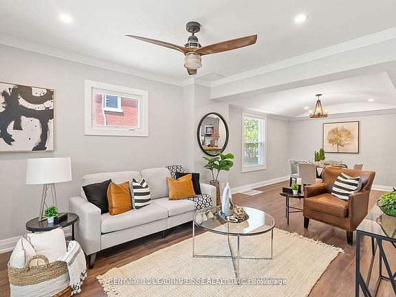 Stunning 5-bedroom, 3-bathroom home offering the perfect blend of luxury and comfort. Every inch of this beautiful home has been thoughtfully transformed from top to bottom, creating an inviting sanctuary for the entire family. The heart of the home is the spacious, updated eat-in kitchen featuring brand-new appliances, perfect for everyday living and entertaining guests. Soaring 8.5-foot ceilings and gleaming hardwood floors throughout add an air of elegance and warmth, while custom finishes highlight the exquisite craftsmanship in every room. Each bathroom on the first, second, and third floors has been tastefully upgraded with high-end finishes and designer touches. Step outside onto the expansive deck and enjoy your private backyard oasis, ideal for relaxing or hosting gatherings. A double private driveway offers parking for up to 8 cars, an exceptional feature for families and visitors alike. This home is located just steps away from an open park and only 1 minute from Hwy 401, making your daily commute a breeze. Current photos do not reflect the homes updated condition.